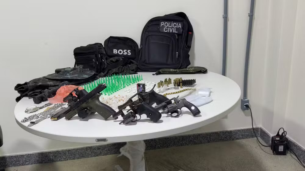 Durante a operação, a polícia apreendeu um vasto arsenal e entorpecentes. Entre os itens recolhidos estão: