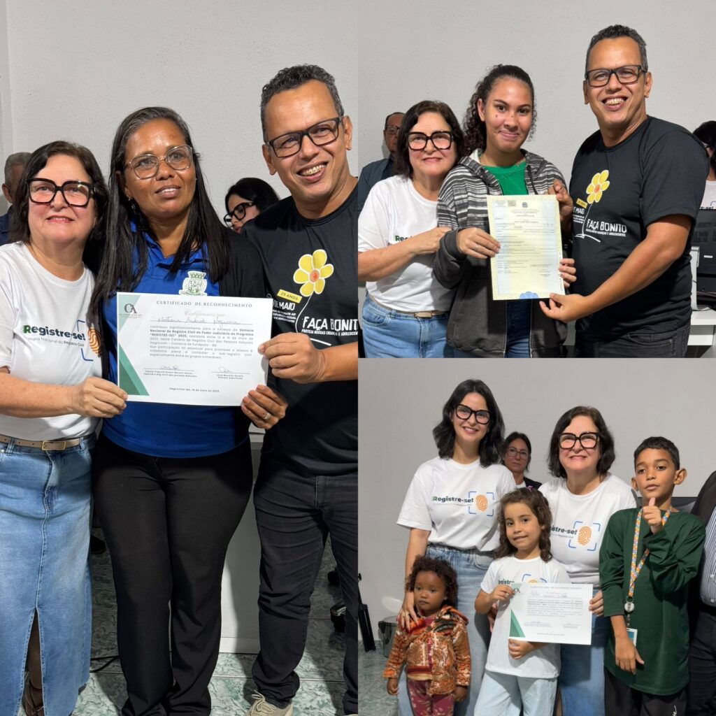 Na sexta-feira, 16 de maio, o Cartório de Registro Civil de Itagimirim encerrou a Semana Nacional do Registro Civil – REGISTRE-SE! com uma cerimônia marcada por emoção, gratidão e forte presença comunitária. A iniciativa, promovida pelo Conselho Nacional de Justiça (CNJ) em parceria com o Tribunal de Justiça da Bahia (TJBA) e a Vara de Registros Públicos da Comarca de Eunápolis, teve como objetivo garantir o acesso gratuito à documentação civil básica para pessoas em situação de vulnerabilidade social.
