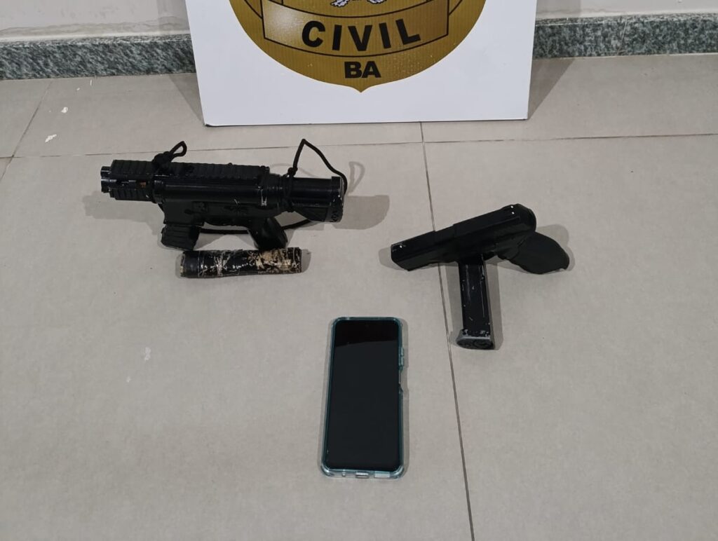 No decorrer das diligências, foram apreendidos simulacros de arma de fogo em endereços distintos, objetos com características compatíveis com o instrumento utilizado nos crimes.