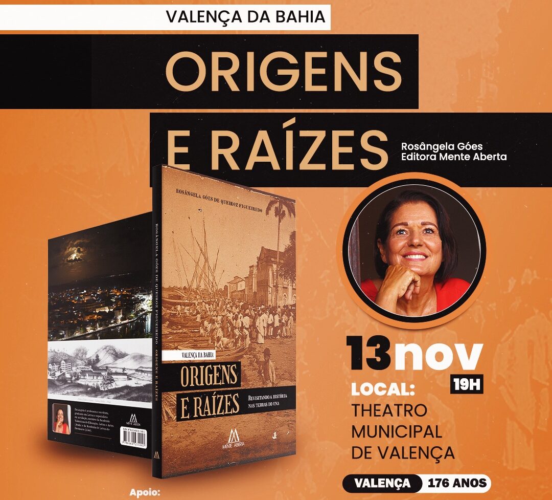 A escritora e professora Rosângela Góes de Queiroz Figueiredo lança, no próximo dia 13 de novembro, às 19h, no Teatro Municipal de Valença, o livro “Valença da Bahia: Origens e Raízes”, publicado pela Editora Mente Aberta.